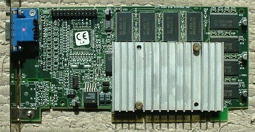 | The original Rampage was supposed to come out when the Voodoo 3 ended up being released, but Rampage wasn't complete by then, so the Voodoo 3 was originally released as a placeholder until Rampage was finished. It ended up being number 1 in retail sales, but in the OEM department it did poorly. People would rather have slow 32 bit on the TNT2, than fast 16 bit on the Voodoo 3. The voodoo 3 was SLI compatible, but no consumer SLI boards were produced. Below is a picture of a Voodoo 3 SLI board: |